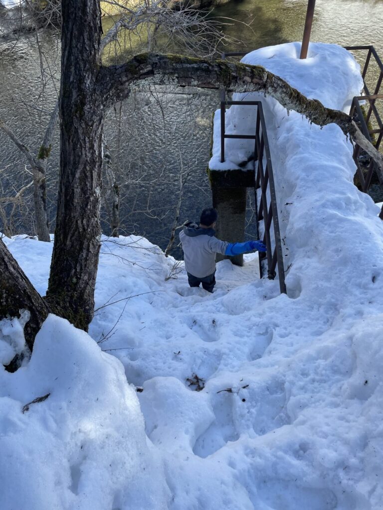 春の staff 2026年2月22日 blog 陽気になってきた もぅ寒波は来ないのか 週末は排雪しながら仕事 今夜は久々にオール 明日必ず出荷なので 雪山に登る作業道作りから 地域の水源取り入れ口ゴミ払い 命懸けで川に降りる 少なくて良かった